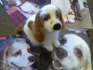 ニードル針でサクサク・・・原毛を刺していくだけの手仕事しっぽが作るわんちゃんは100%羊の毛 瞳も鼻も模様もいろんな色に染まった羊さんの毛を少しずつ足しながら その子の色に近づけていきます